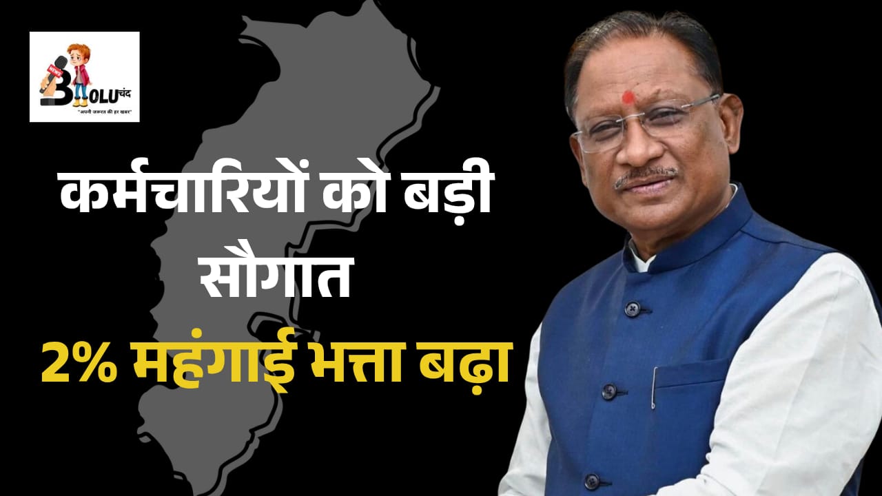 रायपुर: छत्तीसगढ़ सरकार ने अपने कर्मचारियों को महंगाई से राहत देते हुए बड़ा फैसला लिया है। मुख्यमंत्री विष्णुदेव साय ने ऐलान किया कि अब राज्य के अधिकारी-कर्मचारियों को 55% महंगाई भत्ता मिलेगा।